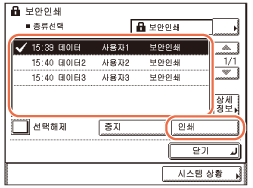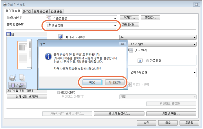 [출력 방법]에서 [비밀 인쇄]를 선택하고 [예] 또는 [아니오]를 클릭합니다.