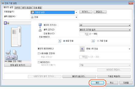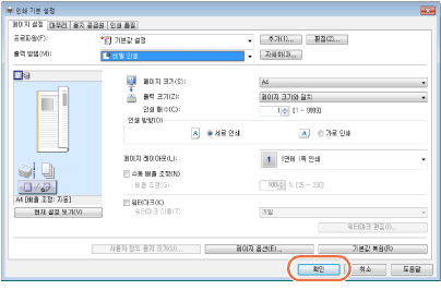 비밀 인쇄 작업에 대해 원하는 설정을 지정하고 [확인]을 클릭합니다.