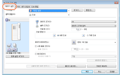 아래 컴퓨터 화면은 [페이지 설정]을 클릭했을 때 표시되는 화면입니다.