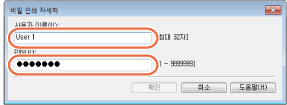 [사용자 이름] 및 [PIN]을 먼저 설정한 경우 사용자 명 및 비밀번호가 여기에 표시됩니다.