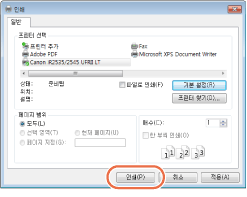 인쇄 방법은 사용하는 어플리케이션에 따라 다를 수 있습니다. 자세한 사항은 어플리케이션과 함께 제공된 지침 설명서를 참고하십시오.