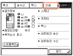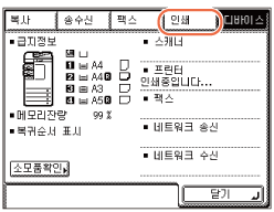 [작업 형태] → [프린터] 또는 [메모리 인쇄]를 누릅니다.