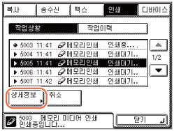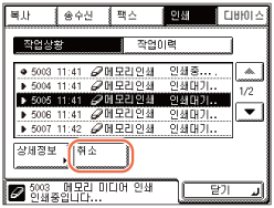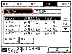 시스템 상황 화면에서 진행 대기중이거나 진행중인 작업을 취소 및 인쇄 작업 상태를 확인할 수 있습니다.