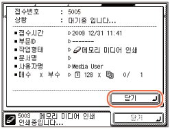 아래 인쇄 작업상황 화면이 나타나는 경우: