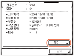 작업 상세 정보를 확인하고 [닫기]를 누릅니다.