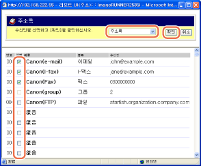 기기에 등록된 수신인 리스트가 새 창에 표시됩니다.