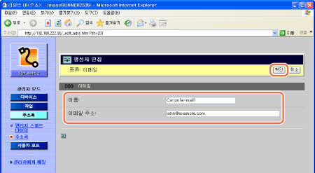 이 절에 나오는 스크린 샷과 절차는 주소록에 대한 것입니다. 주소록과 원터치 고속 다이얼은 수신인 편집 절차가 비슷합니다.