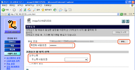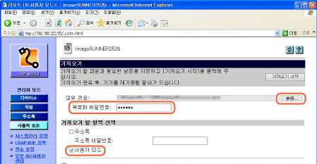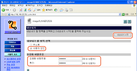 가져오기/내보내기 기능은 리모트 UI가 관리자 모드일 때만 사용할 수 있습니다.