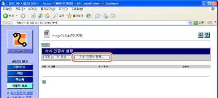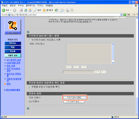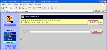 리모트 UI가 시스템 관리자 모드인 경우에만 인증서 설정을 사용할 수 있습니다.