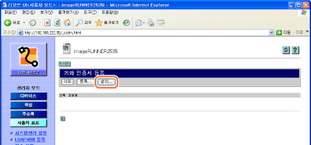 [사용자 모드] →[사용자 모드] 메뉴에서 [설정]를 클릭합니다.