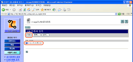 등록할 CA 증명서 파일 옆에 [  ](선택)을 클릭하고 → [등록]을 누릅니다.