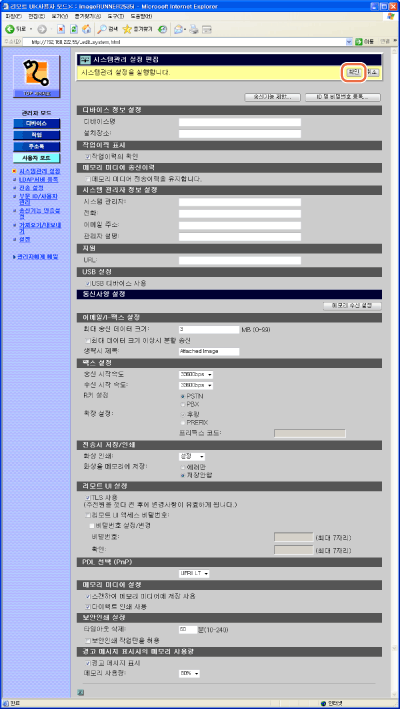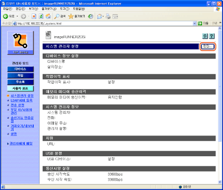 리모트 UI가 관리자 모드일 때만 리모트 UI에서 시스템 관리 설정을 편집할 수 있습니다.