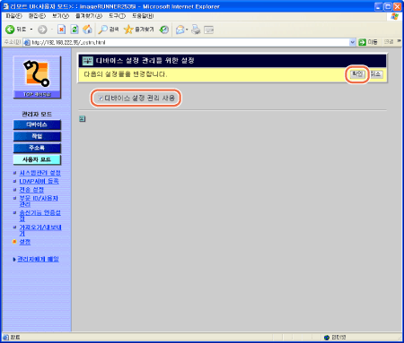 [디바이스 설정 관리 사용]의 확인란을 선택하고 → [확인]을 클릭합니다.