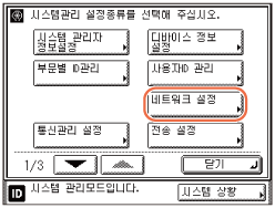(사용자 모드) → [시스템관리 설정] → [네트워크 설정]을 누릅니다.
