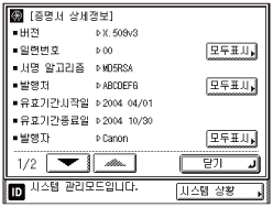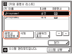 확인할 키 및 증명서를 선택하고 → [증명서 상세정보]를 누릅니다.