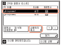 <사용> 아래에 '설정'이 표시된 키와 증명서를 선택하고 → [사용 위치 표시]를 누릅니다.