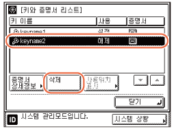 원하는 키와 증명서를 확인하거나 삭제합니다.