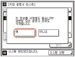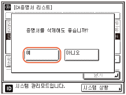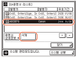 삭제할 CA 증명서를 선택하고 → [삭제]를 누릅니다.