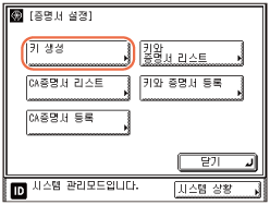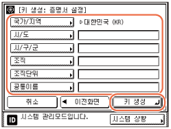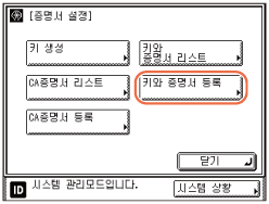웹 브라우저(리모트 UI)에서 기기의 키 페어 (개인 키 및 증명서)또는 와 증명서를 설치한 경우 아래 설명된 대로 키 페어를 등록하십시오.