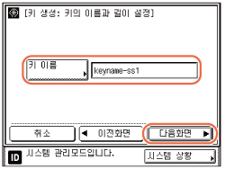 [키 이름]을 누르고 → 화면 키보드를 사용하여 개인 키(최대 24자)의 이름을 입력한 다음 → [확인]을 누릅니다.