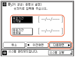[유효기간 시작일] → - (숫자키)를 사용하여 유효 시작일 (년, 월, 일)을 입력 합니다.