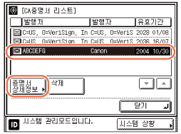 확인할 CA 증명서를 선택하고 → [증명서 상세정보]를 누릅니다.