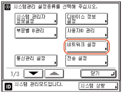 (사용자 모드) → [시스템관리 설정] → [네트워크 설정]을 누릅니다.