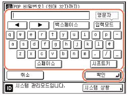 [POP 비밀번호]를 누르고 → POP 서버에 액세스하기 위한 비밀번호를 입력한 후 → [확인]을 누릅니다.