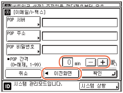 [-] 또는 [+]를 사용하여 [POP 간격]을 POP 서버에서 수신 이메일을 확인하는 간격으로 설정합니다.
