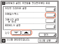 ]를 누르고 → [이메일/I-팩스]를 누릅니다.