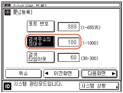[검색 주소의 최대수]를 누르고 → - (숫자 키)를 사용하여 검색할 최대 수인인 수를 입력합니다.