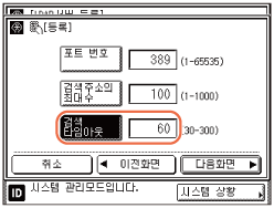 [검색 타임아웃]을 누르고 → - (숫자 키)를 사용하여 타임아웃 시간을 초 단위로 입력합니다.