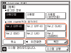 LDAP 서버 버전 및 문자 코드를 선택하고 → [확인]을 누릅니다.