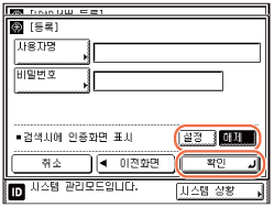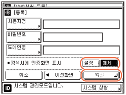 <검색시에 인증화면 표시>에 대해 [설정] 또는 [해제]를 선택합니다.