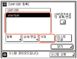 삭제할 LDAP 서버를 선택하고 → [삭제]를 누릅니다.