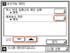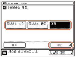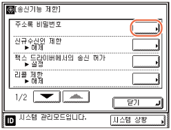 ]를 누른 다음 → [동보 송신 제한]을 누릅니다.