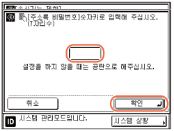 시스템 관리 부문 ID 및 시스템 관리 비밀번호를 입력하여 기기에 로그인한 경우 주소록 비밀번호를 입력할 필요가 없습니다.