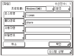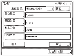 터치 패널 화면의 언어가 네트워크의 컴퓨터와 다른 경우, [호스트명]과 [폴더경로]가 제대로 표시되지 않거나 디렉토리를 검색하지 못할 수 있습니다.