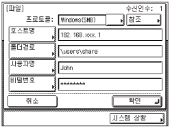 터치 패널 화면의 언어를 변경한 경우, [호스트명]과 [폴더경로]가 제대로 표시되지 않거나 디렉토리를 검색하지 못할 수 있습니다.