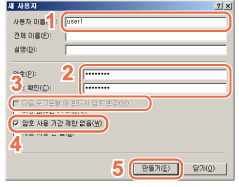 ![]() 1. [새 사용자] 대화상자의 [사용자 이름]에 사용자 이름을 입력합니다.