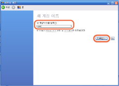 [새 계정 만들기]를 클릭하고 → [새 계정의 이름 입력]에 사용자 이름을 입력한 후 [다음]을 클릭합니다.