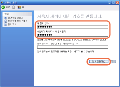 2. [암호]에 암호를 입력하고 → [암호 확인]에 암호를 다시 입력한 후 → 20자 이하의 영숫자를 사용자 이름으로 입력하고 14자 이하의 영숫자를 암호로 입력합니다.