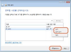 공유 폴더에 액세스하는 사용자를 설정합니다.