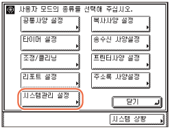 (사용자 모드) → [시스템관리 설정]을 누릅니다.
