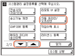[자동 온라인/오프라인]이 나타날 때까지 [] 또는 []를 누른 다음 → [자동 온라인/오프라인]을 누릅니다.