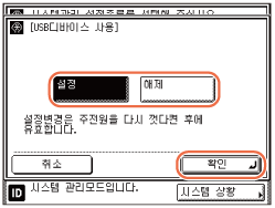 USB 디바이스 사용 설정은 기기의 USB 포트에 연결된 장치(예: 컴퓨터)의 작업을 제한하지만 USB 메모리 미디어의 사용에는 영향을 주지 않습니다.