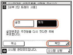]를 누르고 → [내부 2단 트레이 사용]을 누릅니다.