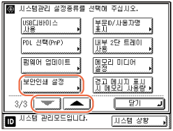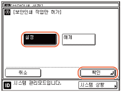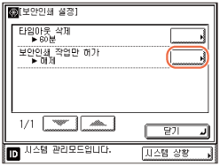 [보안 인쇄 설정]이 나타날 때까지 [] 또는 []를 누르고 → [보안 인쇄 설정]을 누릅니다.