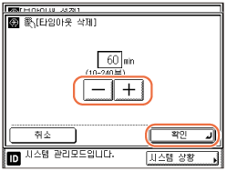 [-] 또는 [+]를 눌러 원하는 타임아웃 기간을 입력하고 → [확인]을 누릅니다.