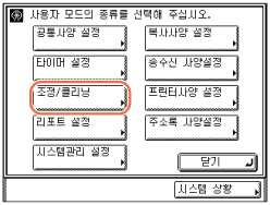 (사용자 모드) → [조정/클리닝]을 누릅니다.